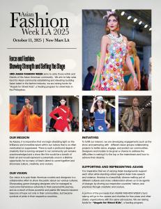 “Fashion has always been a form of storytelling — and Asian Fashion Week LA tells the story of identity, resilience, and pride,” said Sonia D. Bermejo, Executive Producer of Asian Fashion Week LA and Publisher of Asian Fashion Magazine. “This event represents the bridge between cultures and the beauty of collaboration.”