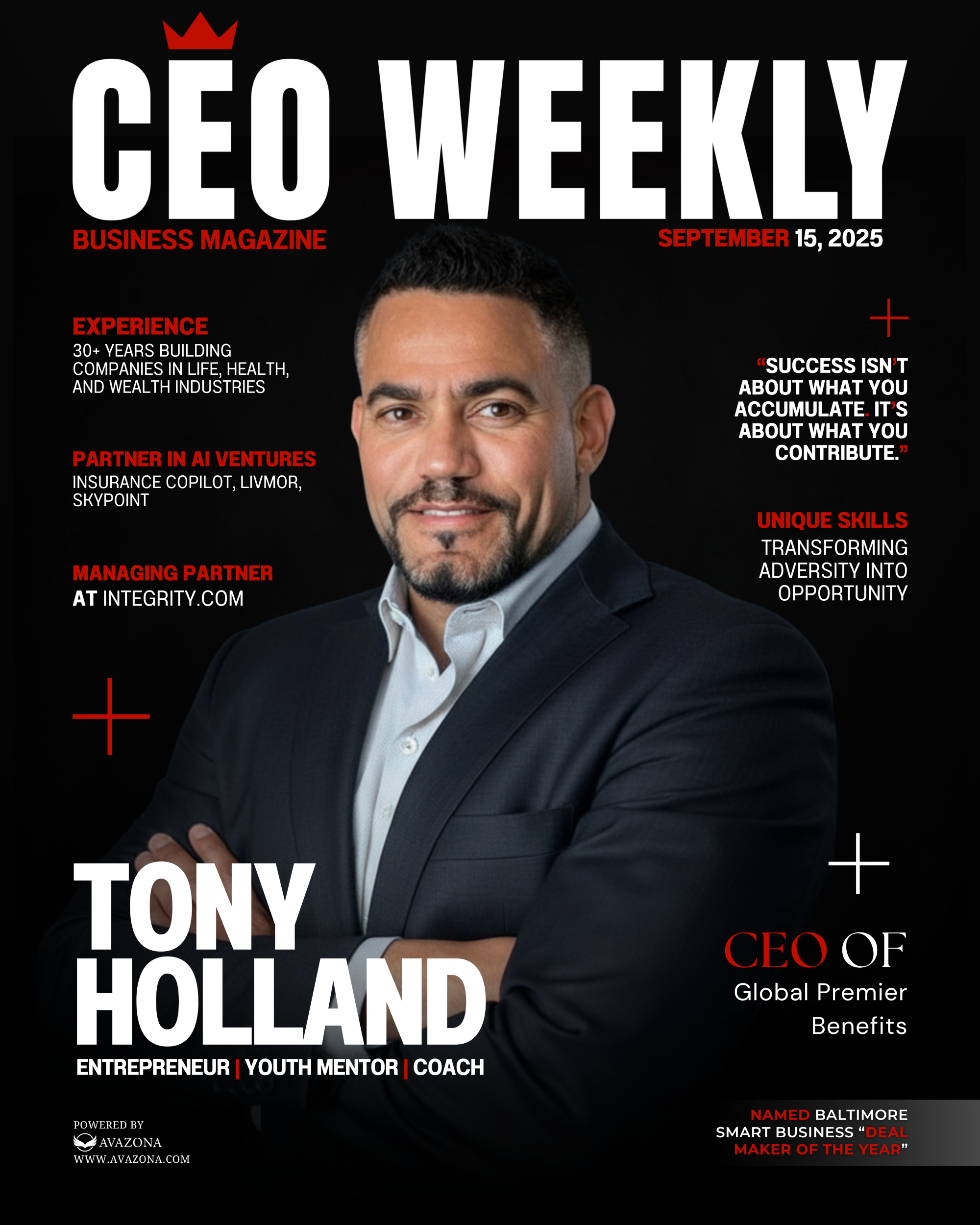 BALTIMORE, MD, UNITED STATES, October 8, 2025 /EINPresswire.com/ -- The latest feature in CEO Weekly, “From Humble Beginnings to Business Success: Tony Holland’s Story,” explores the remarkable trajectory of entrepreneur and philanthropist Tony Holland, whose path from small-town roots in Brunswick, Maryland, to boardroom leadership offers a modern study in perseverance and purpose.