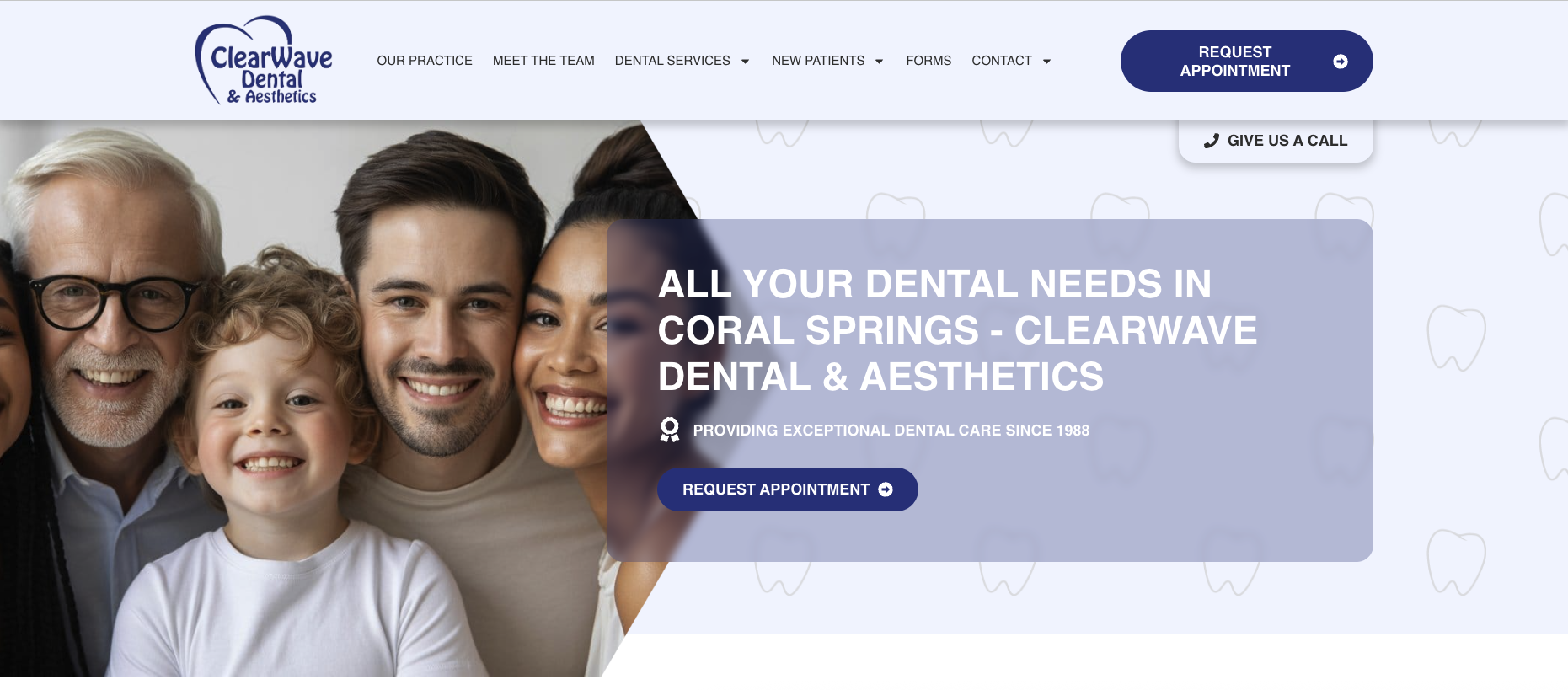 CORAL SPRINGS, FL, UNITED STATES, October 15, 2025 /EINPresswire.com/ -- ClearWave Dental & Aesthetics, a trusted dental practice serving Coral Springs and surrounding communities since 1988, today announced the launch of its newly redesigned website at www.clearwavedental.com. The modern digital platform reflects the practice's commitment to accessibility and patient-centered care, making it easier for Coral Springs residents to access comprehensive dental services and schedule appointments online.