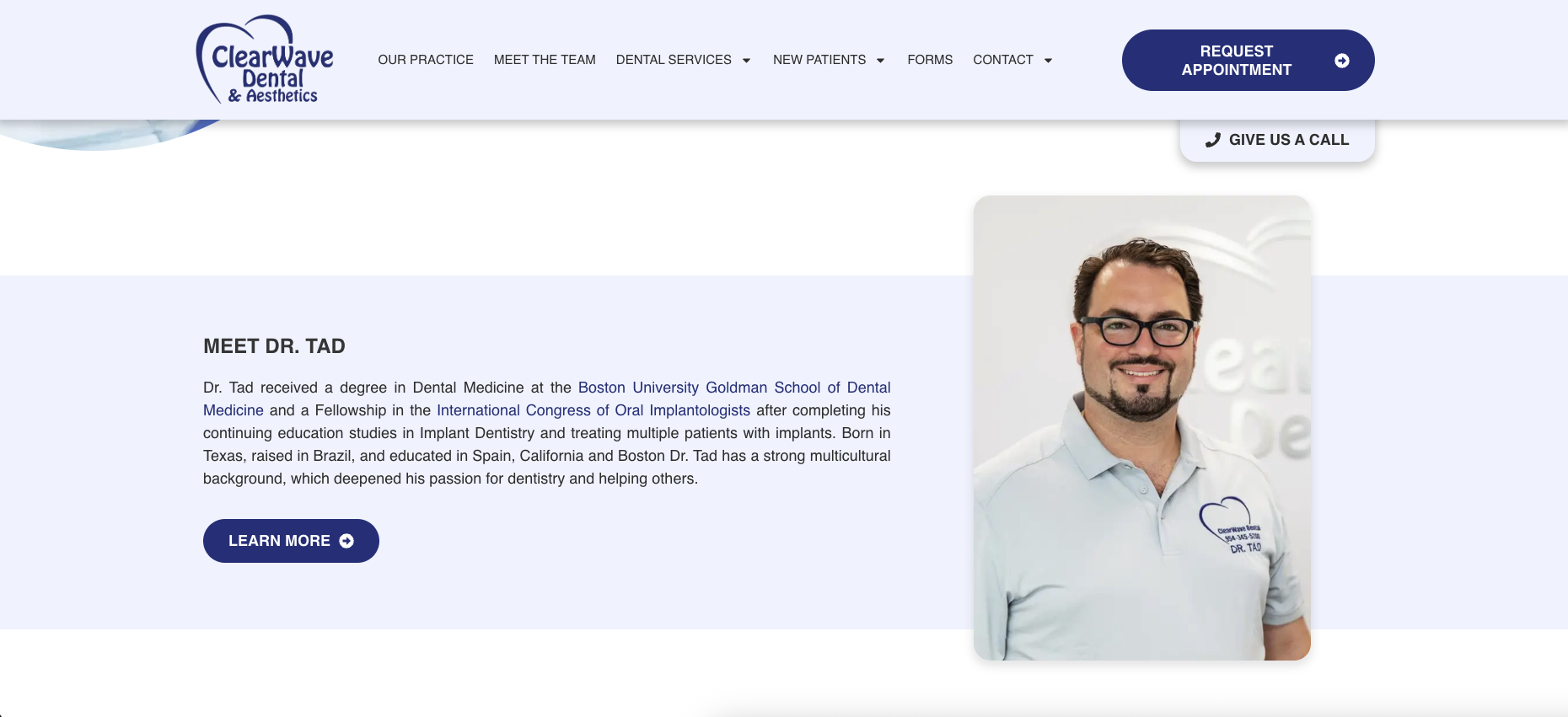 Led by Dr. Tadeu Szpoganicz, DMD, FICOI, ClearWave Dental & Aesthetics has invested in a complete website overhaul to better serve families throughout Coral Springs, Parkland, Coconut Creek, and North Lauderdale. The new website features intuitive navigation, mobile-responsive design, and enhanced accessibility features that align with current web standards, ensuring all patients can easily find information about dental services regardless of their device or abilities.